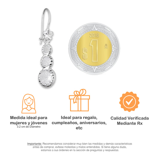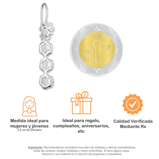 LPAA009 Aretes De Arillo Dama Eslabones Flor Blanco en Plata .925 MLM5165649984