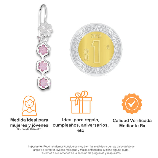 LPAA028 Aretes De Arillo Dama Clavel Colgante con Zirconia Rosa en Plata .925 MLM2855914517