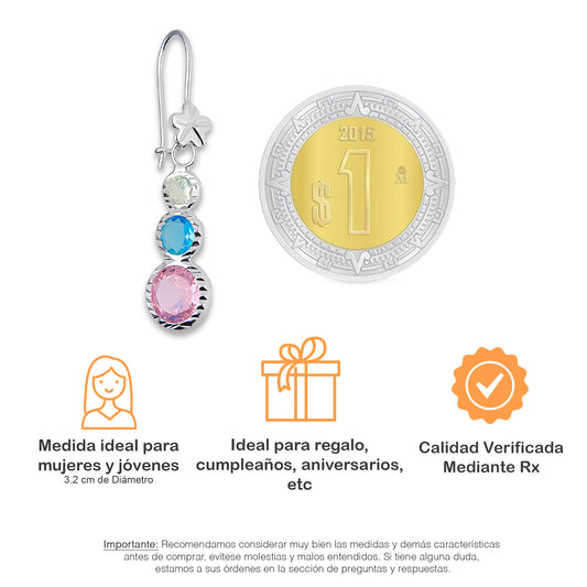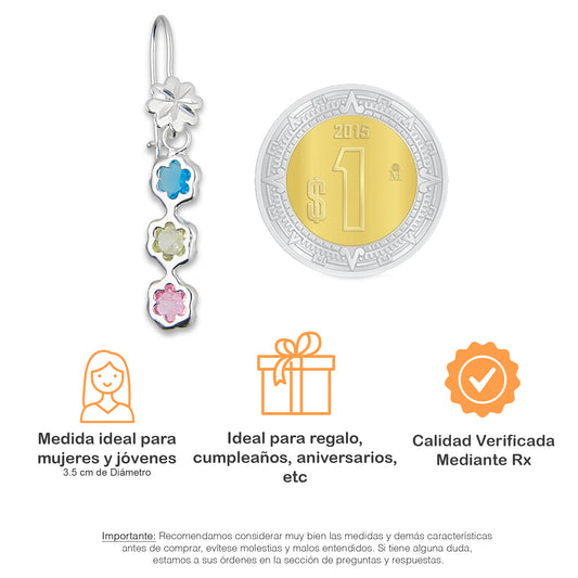 LPAA011 Aretes De Arillo Dama Eslabones Flor Multicolor en Plata .925 MLM5165650114