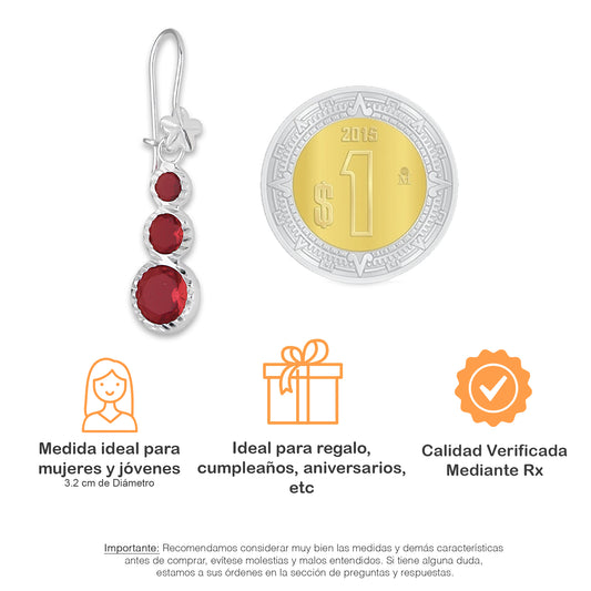 LPAA014 Aretes De Arillo Dama Eslabones Circular Ascendente Rojo en Plata .925 MLM5165649970