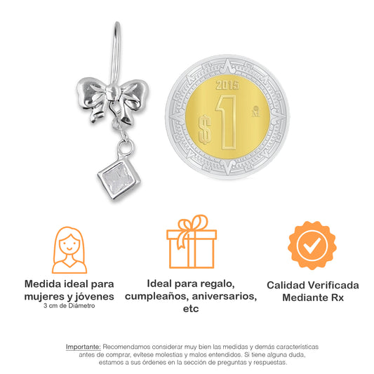 LPAA016 Aretes De Arillo Dama Moño con Rombo Zirconia Blanca en Plata .925 MLM5165619100