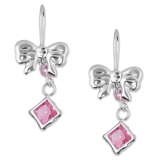 LPAA017 Aretes De Arillo Dama Moño con Rombo Zirconia Rosa en Plata .925 MLM5165630132