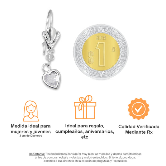 LPAA018 Aretes De Arillo Dama Hojita con Corazón Zirconia Blanca en Plata .925 MLM5165619194
