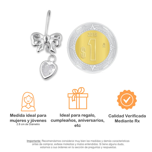 LPAA020 Aretes De Arillo Dama Moño Corazón con Zirconia Blanca en Plata .925 MLM5165619038