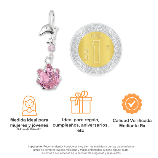 LPAA023 Aretes De Arillo Dama Delfin con Zirconia Redonda de 10 mm Rosa en Plata .925 MLM2855914505