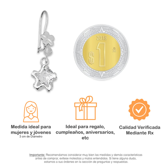 LPAA024 Aretes De Arillo Dama Estrella Colgante con Zirconia Blanca en Plata .925 MLM5165619058