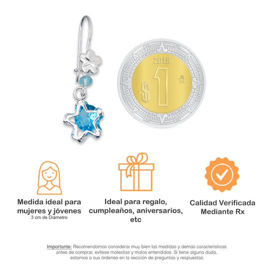 LPAA026 Aretes De Arillo Dama Estrella Colgante con Zirconia Azul en Plata .925 MLM5165649962