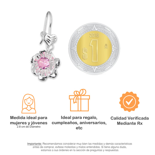 LPAA010 Aretes De Arillo Dama Eslabones Flor Rosa en Plata .925 MLM2855914483
