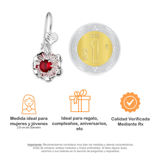 LPAA029 Aretes De Arillo Dama Clavel Colgante con Zirconia Roja en Plata .925 MLM5165649922