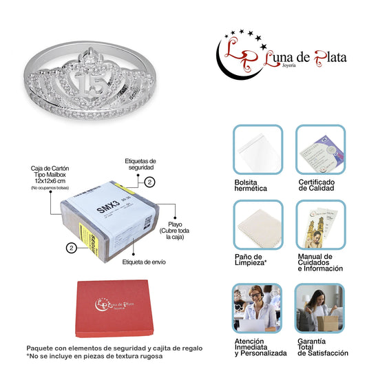 LPAD111 Anillo para Dama Mod Corona XV Años Corazón con Zirconia en Plata .925 Taxco Gro