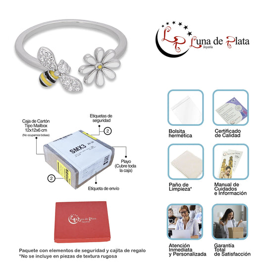 LPAD115 Anillo para Dama Mod Florecita y Abejita Esmaltado con Zirconias en Plata .925 Taxco Gro