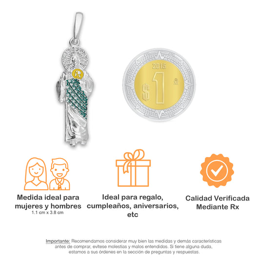 LPDJ302 Dije San Judas Manto Verde 1.4 cm x 4.9 cm en Plata .925 5204971556