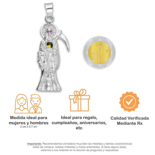 LPDJ306 Dije Santa Muerte Mundo Iris 2 cm x 5.7 cm en Plata .925 5204971558