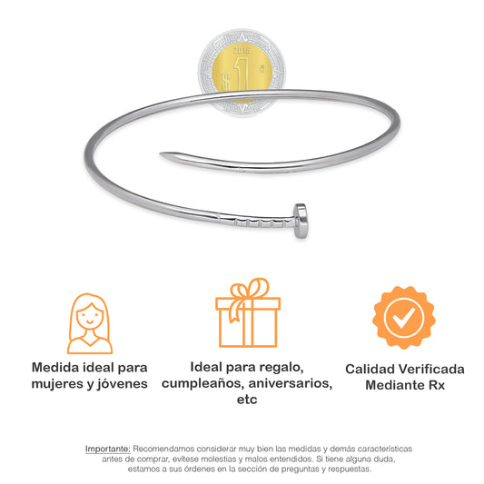LPPD128 Pulsera Brazalete Dama Mod Clavo Doble Vuelta en Plata .925