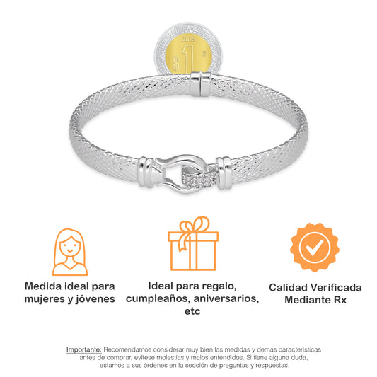 LPPD129 Pulsera Brazalete Dama Mod Clavo con Zirconias en Plata .925