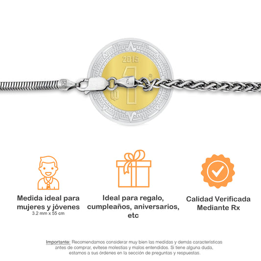 TMPCU010 Cadena Duo Cola de Rata y Espiga con Cilindro 3.2 mm x 55 cm en Plata Fina .925