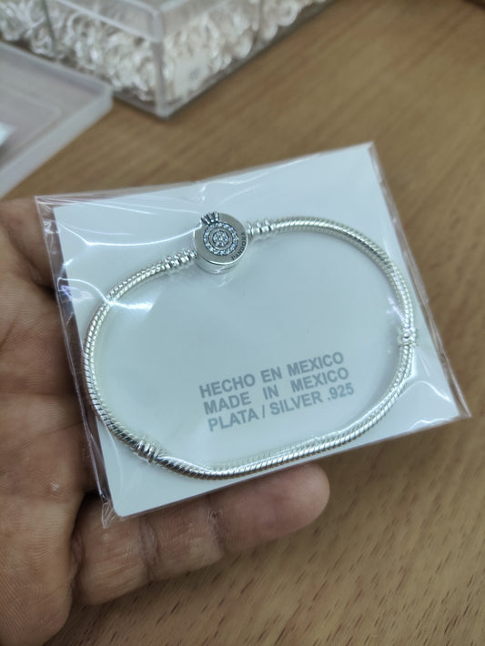 TMPPD001-17 Pulsera Dama Pand Círculo 3 Líneas 17 cm en Plata Fina .925
