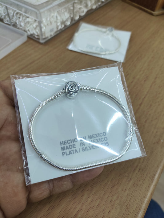 TMPPD002-18 Pulsera Dama Pand Broche Rose 18 cm en Plata Fina .925