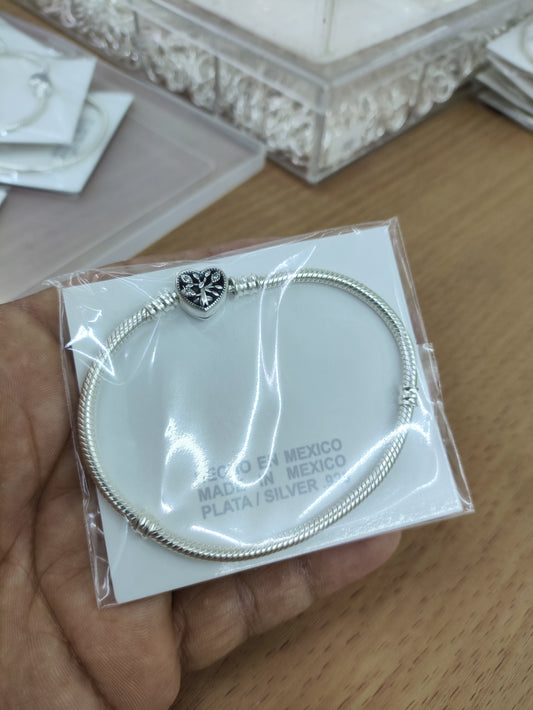 TMPPD005-19 Pulsera Dama Pand Corazón Floral 19 cm en Plata Fina .925
