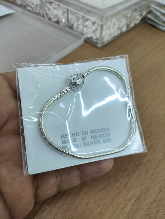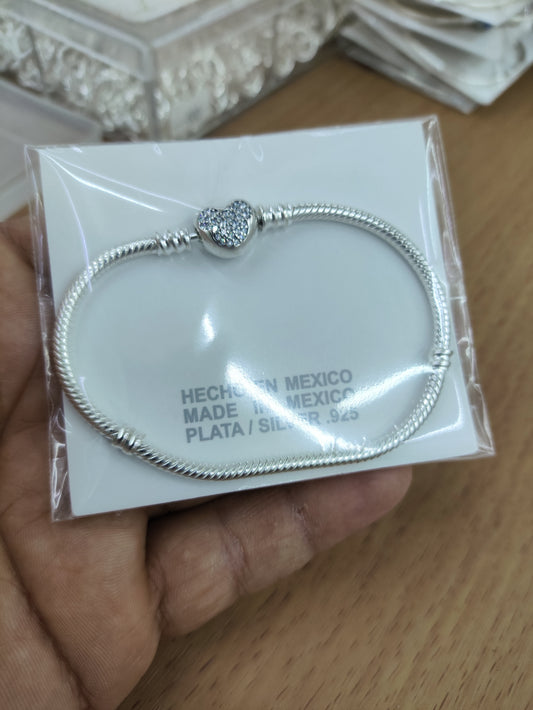 TMPPD011-17 Pulsera Dama Pand Corazón Centro Blanco 17 cm en Plata Fina .925