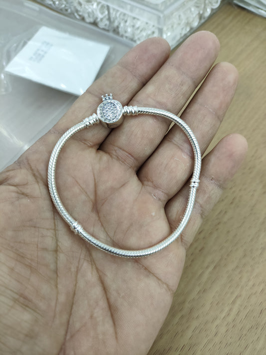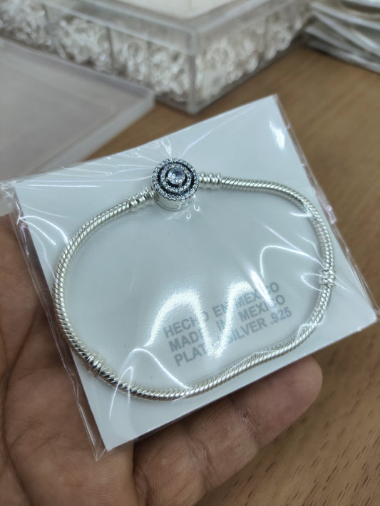 TMPPD012-19 Pulsera Dama Pand Óvalo Centro Zirconias Corona 19 cm en Plata Fina .925