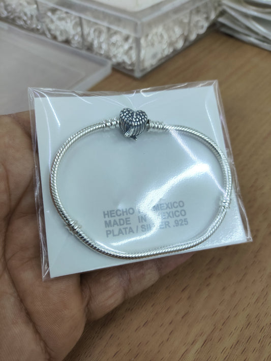 TMPPD009-17 Pulsera Dama Pand Corazón con Alas 17 cm en Plata Fina .925