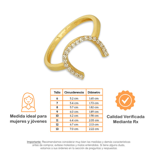 MR14AD043 Anillo Dama Oro Sólido 14K Modelo Herradura Sencilla Con Zirconia