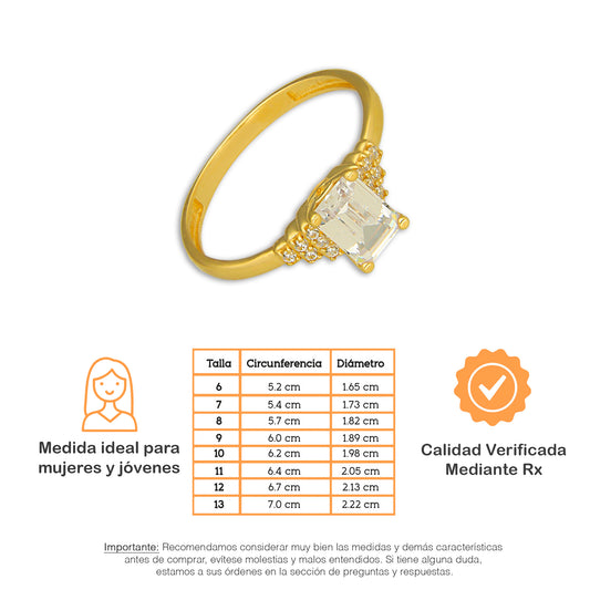 MR14AD062 Anillo Dama Oro Sólido 14K Modelo Solitario Baguettes Horizontal Zirconia Cuadrada 6 mm