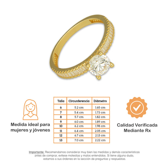 MR14AD058 Anillo Dama Oro Sólido 14K Modelo Solitario Línea Baguettes 6 mm Zirconia Principal