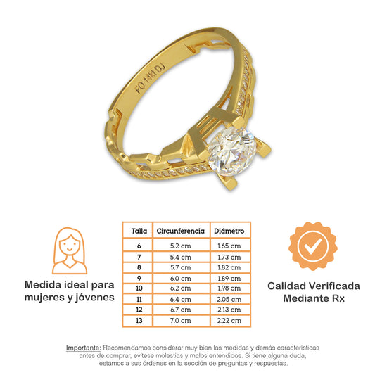 MR14AD056 Anillo Dama Oro Sólido 14K Modelo Solitariio Triada 6 mm Zirconia Principal