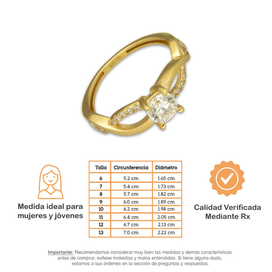 MR14AD061 Anillo Dama Oro Sólido 14K Modelo Solitario Ondas 5 mm Zirconia Principal