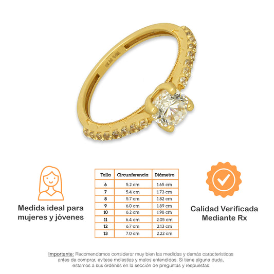 MR14AD025 Anillo Dama Solitario Oro Sólido 14K Modelo Zirconias Resaltadas 5 mm Zirconia Principal