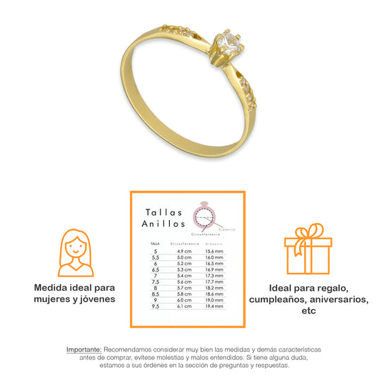 MR14AD001 Anillo Solitario Dama Oro Sólido 14K Modelo 4 PL Zirconia Principal 3 mm