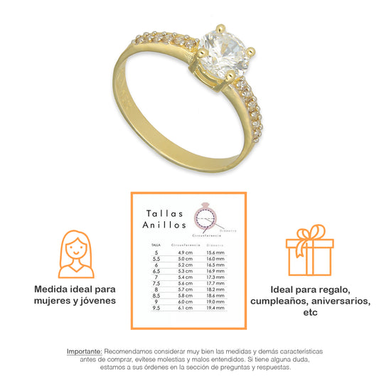 MR14AD007 Anillo Solitario Dama Oro Sólido 14K Modelo 2 LZ Zirconia Principal 6 mm