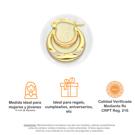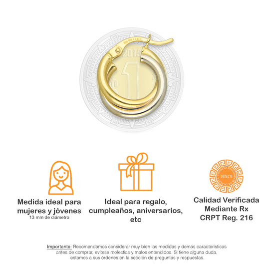 MR14AR001 Arete Arracada Oro Sólido 14K Modelo Doble Aro Oro Blanco y Amarillo 1.3 cm