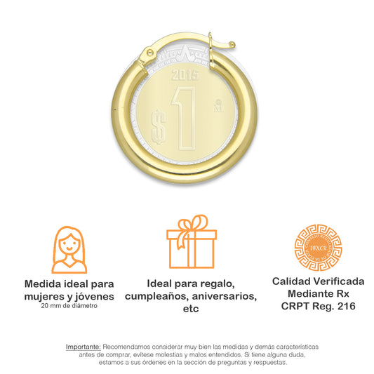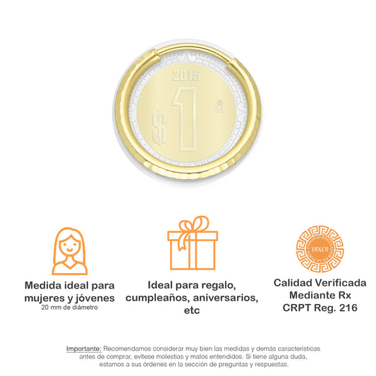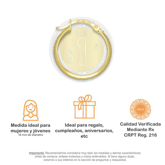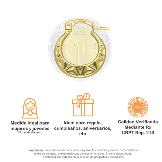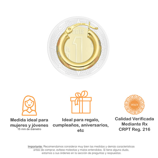 MR14AR009 Arete Arracada Oro Sólido 14K Modelo Serial Lisa 1.5 cm