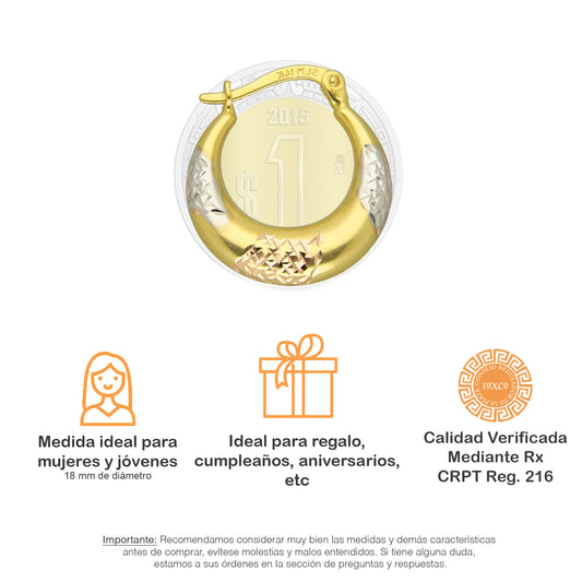 MR14AR004 Arete Arracada Oro Sólido 14K Modelo Media Caña Diamantada 1.8 cm