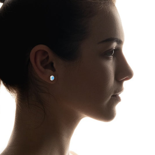 LPAP102 Arete Broquel Círculo Ópalo Azul Bisel Plata .925 Taxco 3138152754