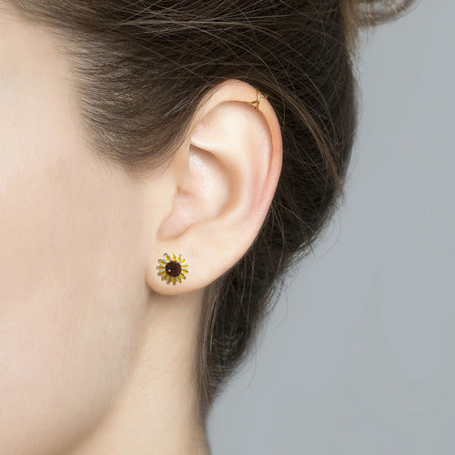LPBR031 Aretes Broquel Plata Mod Girasol Esmalte Y Crist Plata .925 MLM869066366