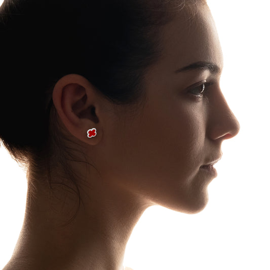 LPBR096 Arete Broquel Trébol Rojo Esmalte 11 mm en Plata .925 Taxco