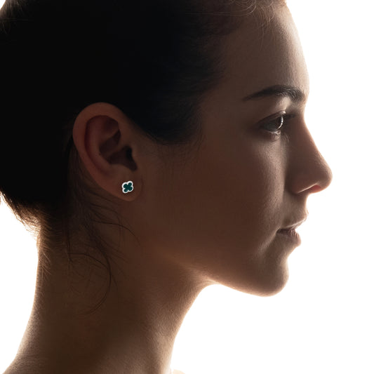 LPBR097 Arete Broquel Trébol Verde Esmalte 11 mm en Plata .925 Taxco