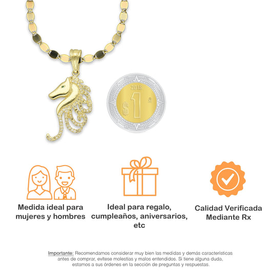 NR14DP057 Cadena Oro Sólido 10K + Dije Oro Sólido 14K Cabeza Caballo Crin con Zirconias 1.7 cm x 3.5 cm