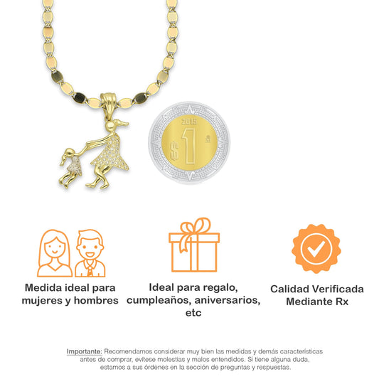 NR14DP058 Cadena Oro Sólido 10K + Dije Oro Sólido 14K Madre e Hija Jugando 1.8 cm x 2.5 cm