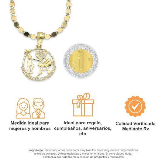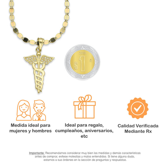NR14DP062 Cadena Oro Sólido 10K + Dije Oro Sólido 14K Medicina con Zirconias 1.8 cm x 3.3 cm