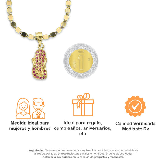 NR14DP061 Cadena Oro Sólido 10K + Dije Oro Sólido 14K Chanclita con Zirconias Rojas .9 cm x 2.5 cm