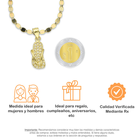 NR14DP060 Cadena Oro Sólido 10K + Dije Oro Sólido 14K Chanclita con Zirconias Blancas .9 cm x 2.5 cm