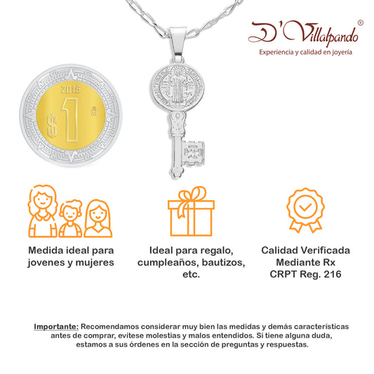 LPDP053 Dije Llave San Benito 3.6 cm x 1.2 cm + Cadena 40 + Regalo Plata .925 Taxco Gro 1386624523