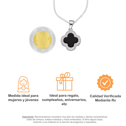 LPCU066 Gargantilla Cadena 1 Trébol Negro Orilla Zirconia 45 cm en Plata .925 Taxco