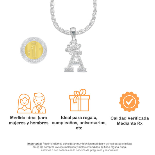 LPDP118 Cadena + Dije Letra Con Corona Abecedario con Zirconia en Plata .925 Taxco Gro