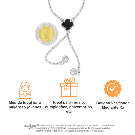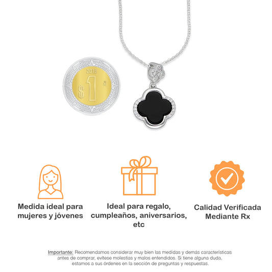 LPCU065 Gargantilla Cadena 1 Trébol Negro con Mini 45 cm en Plata .925 Taxco